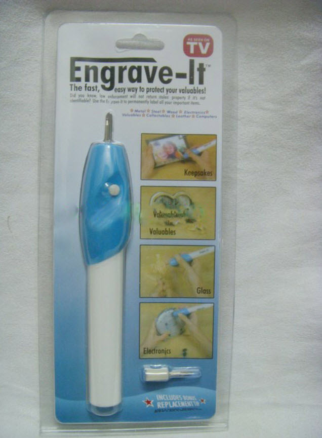 قلم حکاکی Engrave It یک ابزار تراش الکتریکی است و این قلم حکاکی یک ابزار بسیار کاربردی برای حک کردن متنی خاص بر روی انواع فلزات، چوب، سنگ، شیشه، پلاستیک، جواهرات، BCP، وسایل شخصی، هدایا و هرچیز ارزشمند و شخصی می باشد و با استفاده از این قلم می توان بر روی جواهرات و وسایل ارزشمندتان نام خود را حکاکی کنید یا وسایل کارگاه خود را علامت گذاری کنید، می تونید آرم یا لگوی شرکت خود را بر روی وسایل دفتر کار خود حکاکی کنید. خلاقیت به خرج دهید و وسایل شخصی خود را نشانه گذاری کنید و می توانید به فرزندان خود یاد دهید که اسم خود را بر روی وسایل و اسباب بازی هایشان حک کنند.