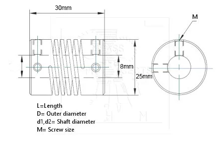 از نظر مشخصات فنی، این کوپلینگ دارای قطر خارجی D25 میلی متر و طول L30 میلی متر است. گشتاور نامی آن 2N.m و حداکثر گشتاور قابل تحمل 4N.m می باشد. حداکثر سرعت عملکرد 6000rpm است و گشتاور اینرسی آن 2.8x10-6 kg.m2 می باشد. انحراف محوری مجاز 0.2± میلی متر و انحراف زاویه ای تا 0.15 میلی متر است. وزن کل کوپلینگ تنها 30 گرم است که نصب و حرکت آن را در سیستم های کوچک و حساس تسهیل می کند.