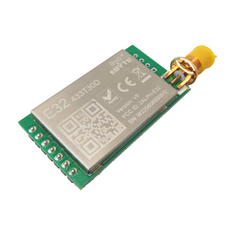 Utilizing LoRa technology and the SX1278 chip, the E32 433T30D transceiver module is designed to transmit data over ISM 433MHz frequencies and supports a supply voltage range of 3.3V to 5.2V. Additionally, with low power consumption and a receive sensitivity of -147dBm, this module performs excellently in various conditions, including environments with weak or congested signals.