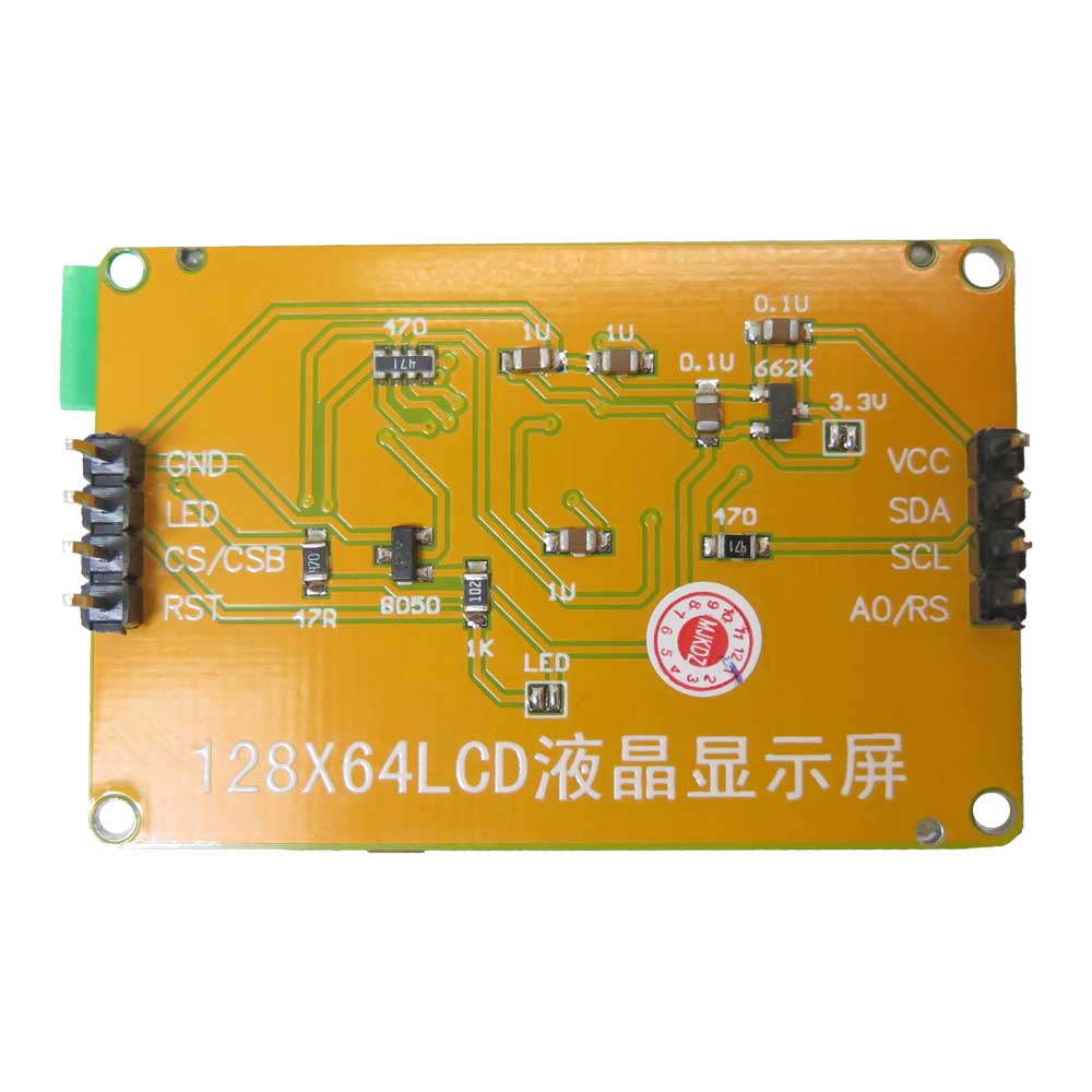 This is a monochrome 128x64 graphic dot matrix LCD display module. Monochrome LCD (mono LCD) technology offers high reliability and is ideal for industrial and consumer applications. Mono LCDs can be alphanumeric LCD (character LCD) or graphic LCD. IC driver of this MONO LCD is ST7567 chip which is low poer consumption and can be connected by SPI communication.