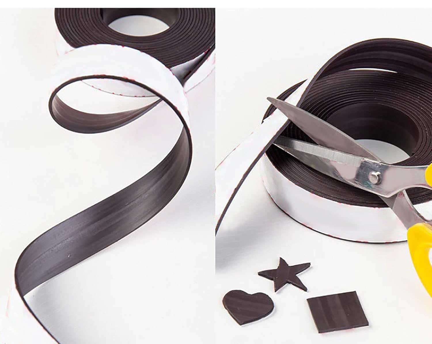 آهنربای لاستیکی نواری با ابعاد 20x1.5 میلی متر یکی از انواع آهنرباهای نرم است که دارای دو سطح متفاوت میباشد. یک طرف آن به رنگ مشکی بوده که سطح مغناطیسی آن را تشکیل میدهد و طرف دیگر سفید که پوشش آن است. این چسب دوطرفه امکان نصب آسان آهنربا روی سطوح مختلف را فراهم میکند. زمانی که چسب دوطرفه را جدا میکنید، رنگ سفید چسب به رنگ مشکی زیرین دیده میشود ولی این قسمت خاصیت مغناطیسی ندارد.