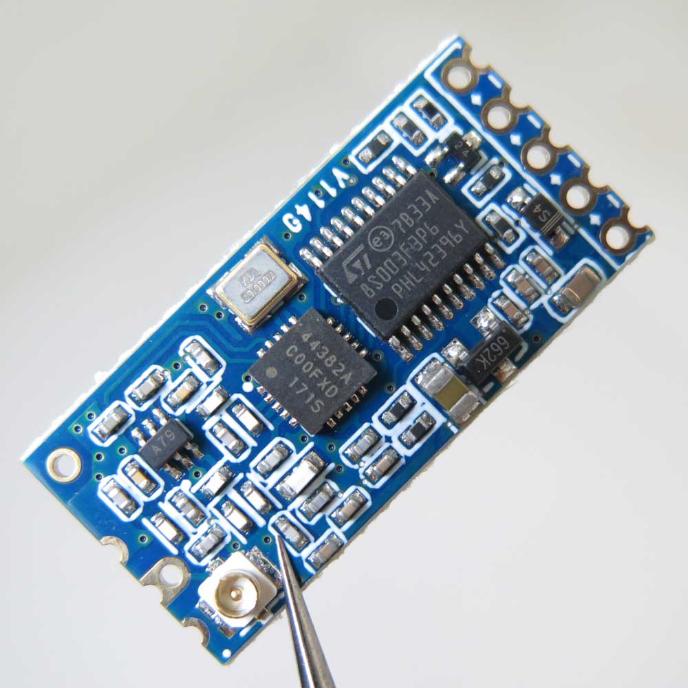 of the module is 100mW (20dBm), the receiving sensitivity is -117dBm at a baud rate of 5000bps in the air. Communication distance is 1000m (FU3 mode at 4800bps serial speed) in open space, 1800m in FU4 mode at reduced baud rate, and volume of data. Long transmission distance is up to 10m in the open air. Stamp holes edge design support SMD installing easy to embed into the application devices.