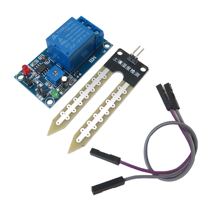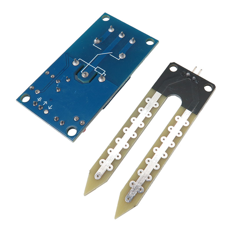 پتانسیومتر دیجیتال آبی رنگ روی برد PCB میباشد که به کاربر اجازه میدهد حساسیت سنسور را بسته به نیاز گیاه و نوع خاک تغییر دهد. همچنین ماژول دارای چراغ نشانگر برق به رنگ قرمز و چراغ نشانگر عمل رله به رنگ سبز است که وضعیت کارکرد دستگاه را به صورت واضح نشان میدهد. ابعاد برد PCB این ماژول 62.5 میلی متر در طول و 35 میلی متر در عرض است و دارای سوراخ های ثابت برای نصب آسان میباشد.