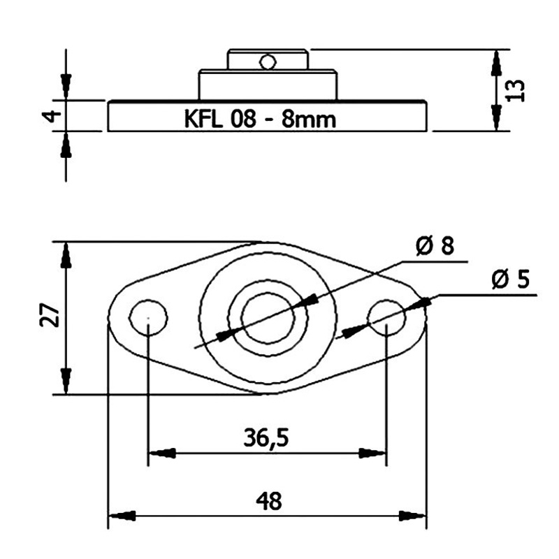 یاتاقان صنعتی فلنج دار 2 پیچ KFL08 با فاصله مرکز سوراخ ها 37 میلی متر و قطر سوراخ 4.8 میلی متر , اتصال مطمئن و ثابتی برای شفت فراهم می کند. آلیاژ روی به کار رفته در ساخت این یاتاقان , مقاومت مناسب و وزن سبک را در کنار دوام مطلوب فراهم می نماید. این یاتاقان ها به دلیل طراحی خود تنظیم شونده , حتی در نصب روی سطوح شیب دار نیز می توانند عملکرد صحیح داشته باشند و از آسیب رسیدن به قطعات دیگر جلوگیری کنند.