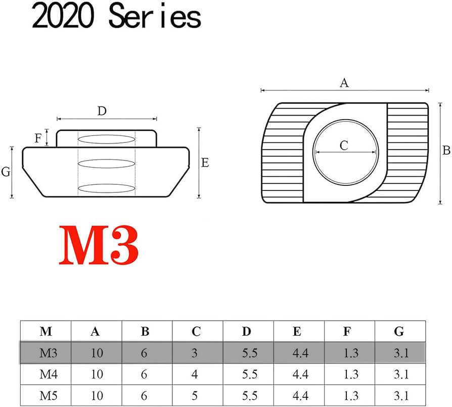 مهره تی M3-20 برای اتصال پروفیل های آلومینیومی مهندسی بسته 10 عددی