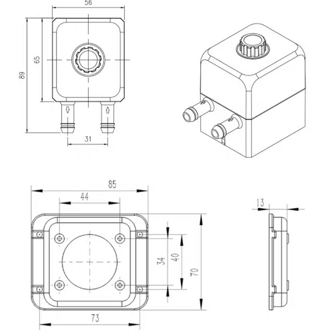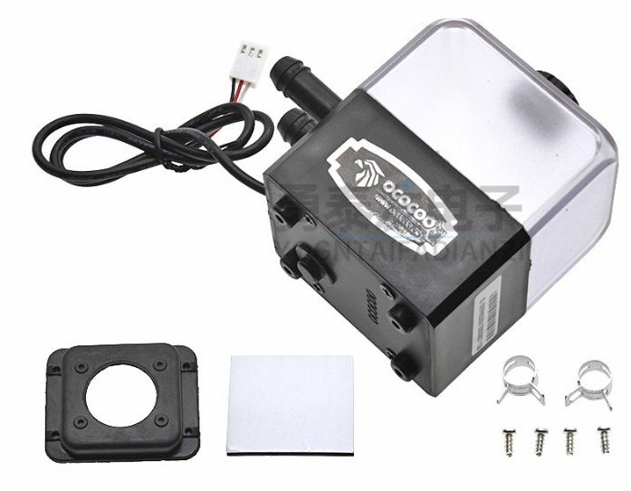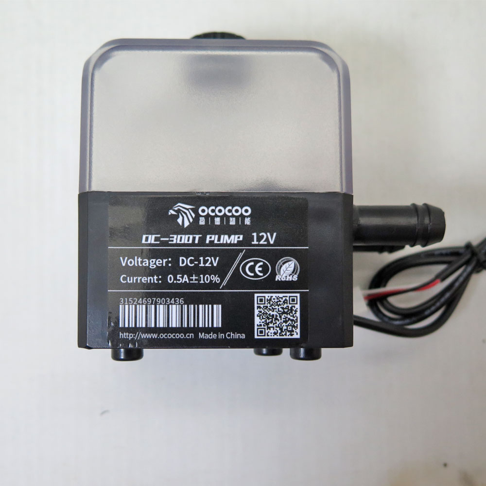 پمپ آب SC-300T از پمپ های بی صداست که با ولتاژ 12 ولتی و از طریق کانکتور 3 پین کوچک تغذیه می شود و قابلیت شار 300 لیتر در ساعت دارد. این پمپ آب ظاهر مناسب، شیشه ای و زیبایی با ظرفیت 150 میلی لیتر دارد و میزان هد آن به 1.9 متر می رسد. پمپ آب بی صدای 12 ولت SC-300T بلبرینگ های سرامیکی دارد و از طریق موتور براشلس با قابلیت کنترل سرعت پشتیبان می شود و بدون هیچ صدایی کار خود را جهت خنک کنندگی و کولینگ قطعات انجام می دهد.