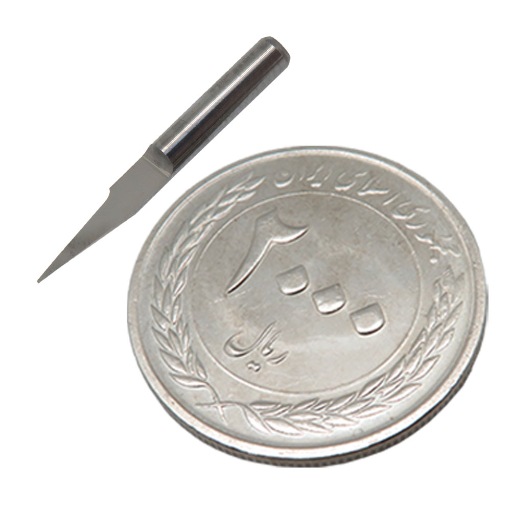 ابزار تراش و حکاکی CNC با زاویه 10 درجه و قطر 0.3 میلی متر یکی از دقیق ترین و کاربردی ترین ابزارها برای انجام عملیات حکاکی و تراشکاری روی سطوح مختلف مانند چوب ، پلاستیک و فلزات نرم به شمار می رود. این ابزار دارای تیغه تخت با شفت 3.175 میلی متر است و طول کلی آن 30 میلی متر ± 1 میلی متر می باشد که امکان نصب آسان روی اکثر دستگاه های CNC استاندارد را فراهم می کند. قطر لبه برش 0.3 میلی متر طراحی شده تا بتوان جزئیات بسیار دقیق را روی سطوح مختلف اجرا کرد.