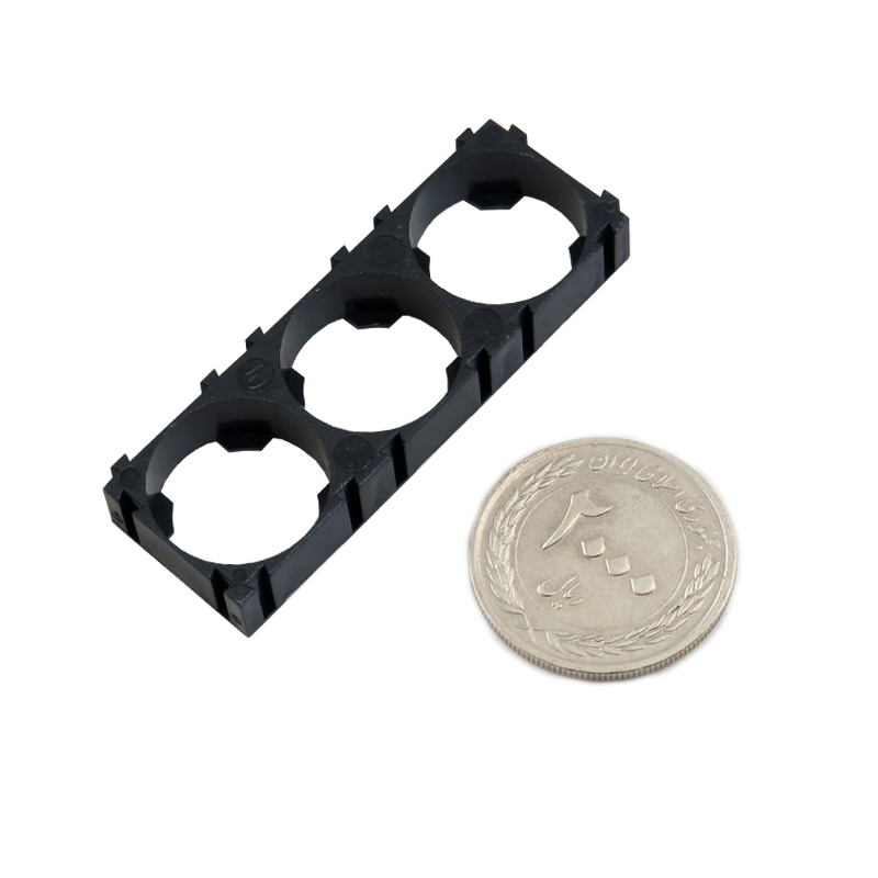 این محصول، براکت نگهدارنده یا هولدرهای باتری های لیتیوم یونی است که قابلیت نگهداری ۳ عدد باتری لیتیوم یون ۱۸۶۵۰ را دارد. این محصول از جنس پلاستیک ساخته شده و به رنگ مشکی می باشد. براکت های نگهدارنده، انتخاب مناسبی برای پک کردن باتری های لیتیوم یون هستند و می توانند به خوبی باتری ها را در کنار هم نگه دارند و به شما این اجازه را می دهند تا به راحتی توسط لحیم کاری آنها را به یکدیگر متصل کنید.