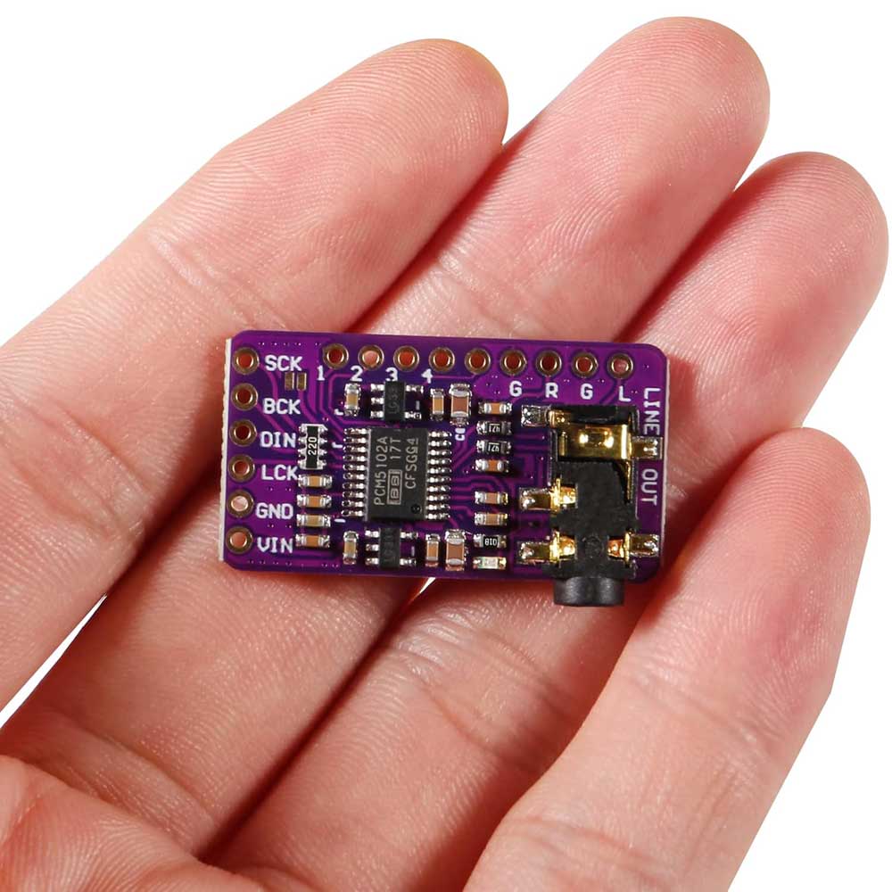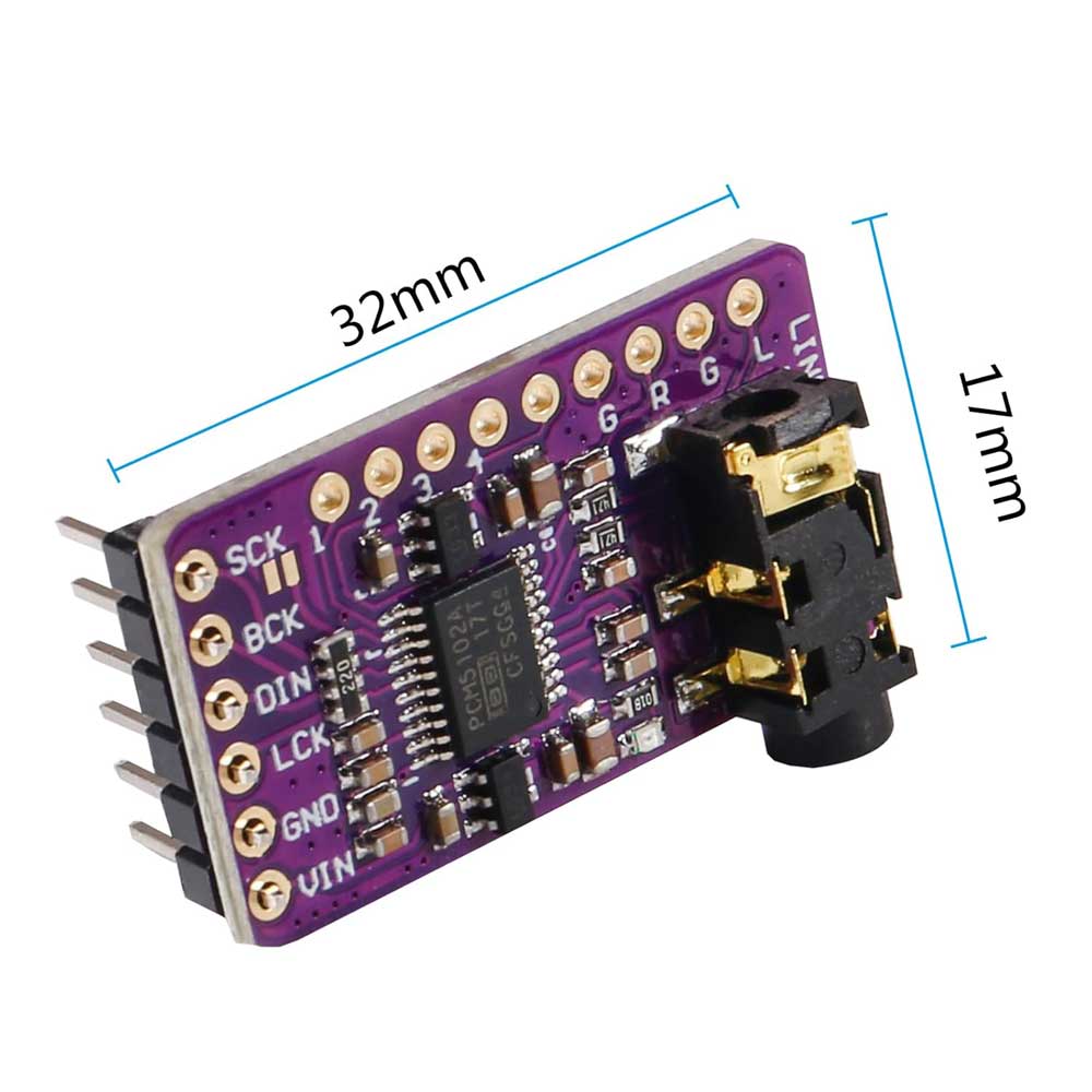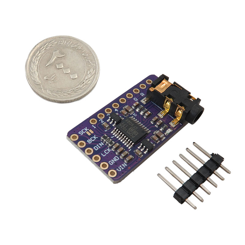 این ماژول از فرکانس نمونه برداری تا 384 کیلوهرتز پشتیبانی می کند و خروجی آن 2.1 ولت موثر ( VRMS ) است که امکان استفاده در پروژه های صوتی حرفه ای و سیستم های صوتی خانگی را فراهم می سازد. ماژول PCM5102A به صورت جمع و جور و با ابعاد 32x17 میلی متر طراحی شده است که نصب و راه اندازی آن در انواع پروژه های DIY، بردهای Raspberry Pi ، ESP32 و آردوینو بسیار آسان است. در طراحی این ماژول از آخرین نسل معماری Advanced Segment DAC شرکت TI استفاده شده است که باعث عملکرد دینامیکی عالی و تحمل بالاتر در برابر تغییرات کلاک و jitter می شود.