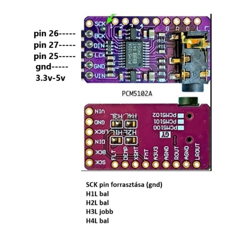 ماژول PCM5102 در بخش پشتی خود دارای چهار جامپر از نوع پل لحیمی (Solder Jumper) دارد، که هر کدام برای تنظیم عملکرد مدار در نظر گرفته شده اند. کاربرد هر یک به شرح زیر است: