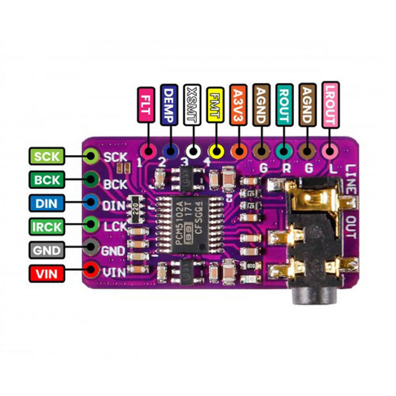 DAC مدل PCM5102A استفاده می کند که قابلیت دریافت و دیکود سیگنال های دیجیتال صوتی از طریق رابط I2S را دارد و صدایی شفاف، با وضوح بالا و دقت عالی ارائه می دهد. نسبت سیگنال به نویز این ماژول 112 دسی بل و دامنه دینامیکی آن 100 دسی بل است که تجربه ای بی نظیر از پخش موسیقی و صدا برای کاربران فراهم می کند.