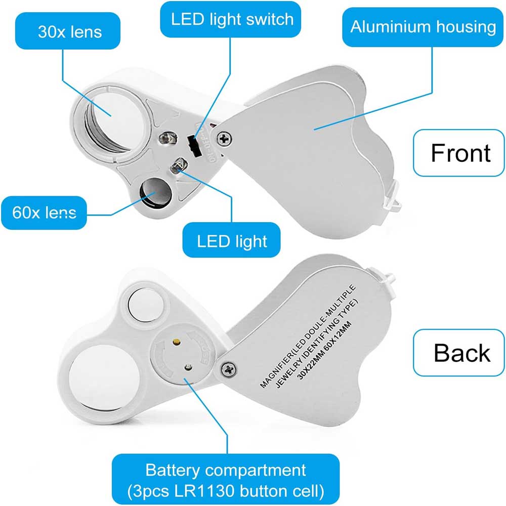 ذره بین تاشو دو لنز 30X و 60X با نور LED ترکیبی از دقت بالا , نور یکنواخت و خوش دستی را ارائه می دهد و برای کاربرد های آموزشی , علمی و حتی بررسی جزئیات روزمره ایده آل است.