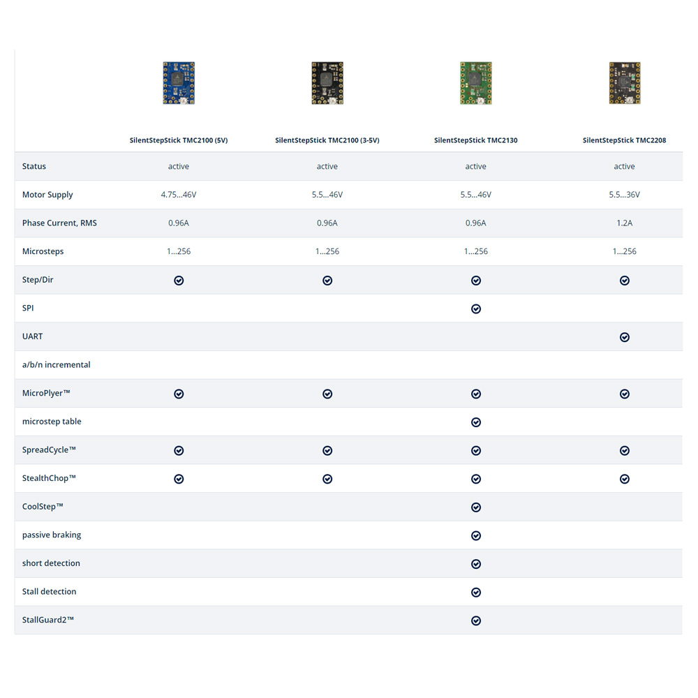 پشتیبانی از میکرو استپ 256 باعث حرکت بسیار نرم و بدون لرزش موتور می شود و درایور استپر موتور بی صدا TMC2130 مخصوص پرینتر سه بعدی ، دقت چاپ بالا و کاهش نویز صوتی را تضمین می کند. فناوری stealthChop نیز حرکتی روان و بی صدا ارائه می دهد و تجربه کاربری حرفه ای در پروژه های حساس به نویز فراهم می کند.