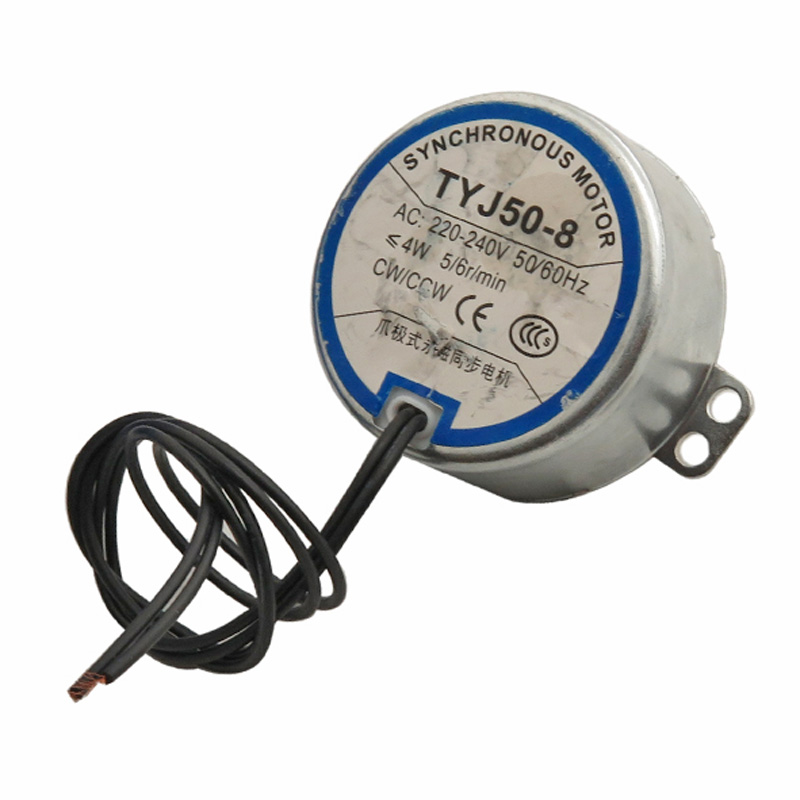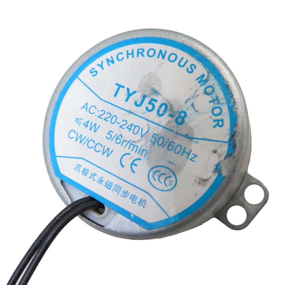موتور سنکرون 220 ولت TYJ50-8 ، به میزان 4 وات توان و بین 5 تا 6 دور در دقیقه سرعت دارد. همچنین این موتور گیربکس دار دارای عملکرد کمصدا، طول عمر بالا و مصرف انرژی پایین میباشد.