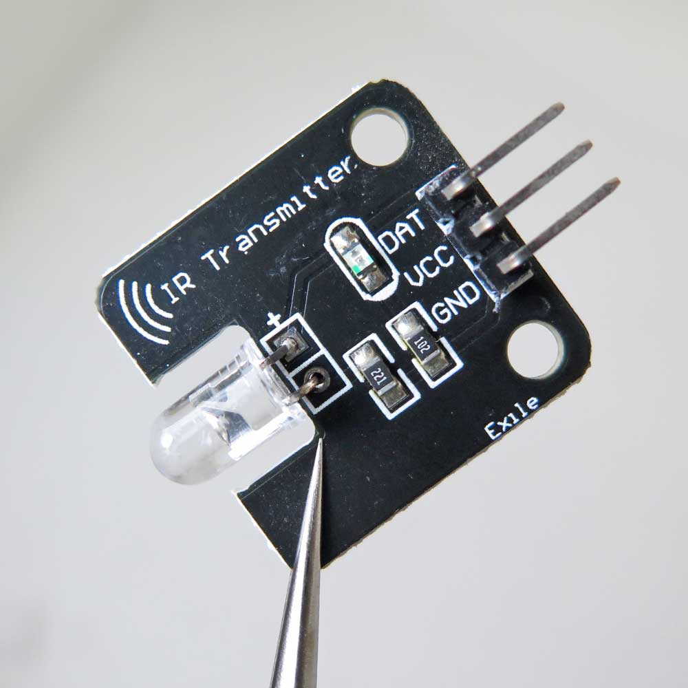 This module's infrared transmitter features an LED that emits light toward the receivers, enabling the transmission and reception of infrared signals commonly used in remote controls and other similar devices. The remote control simulator embedded in this module allows you to control different devices effectively.
