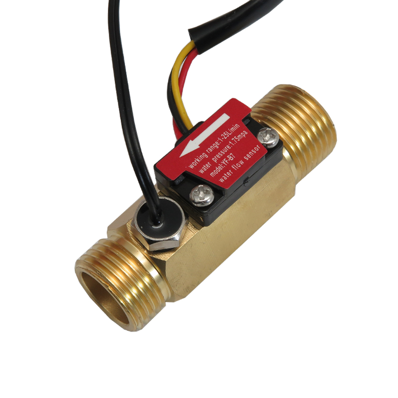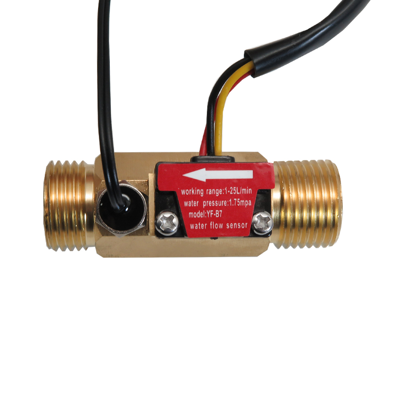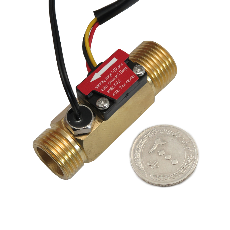 سنسور جریان و دمای آب دیجیتال YF-B7 با اثر هال و بدنه مسی یک قطعه الکترونیکی دقیق و با کیفیت است که برای اندازه گیری سرعت جریان و دمای آب در دستگاه های مختلف مانند دستگاه قهوه ساز، کنتور هوشمند و تجهیزات صنعتی کاربرد دارد. این فلو فلزی از بخش های اصلی شامل بدنه مسی، روتور آب، سنسور اثر هال Hall Effect و سنسور دما تشکیل شده است. هنگامی که آب از روتور عبور می کند، روتور شروع به چرخش می کند و سرعت چرخش آن با میزان جریان آب تغییر می کند. سنسور اثر هال این تغییرات را به سیگنال الکتریکی تبدیل می کند و فرکانس شکل موج پالسی خروجی با تغییر سرعت جریان آب تغییر خواهد کرد.