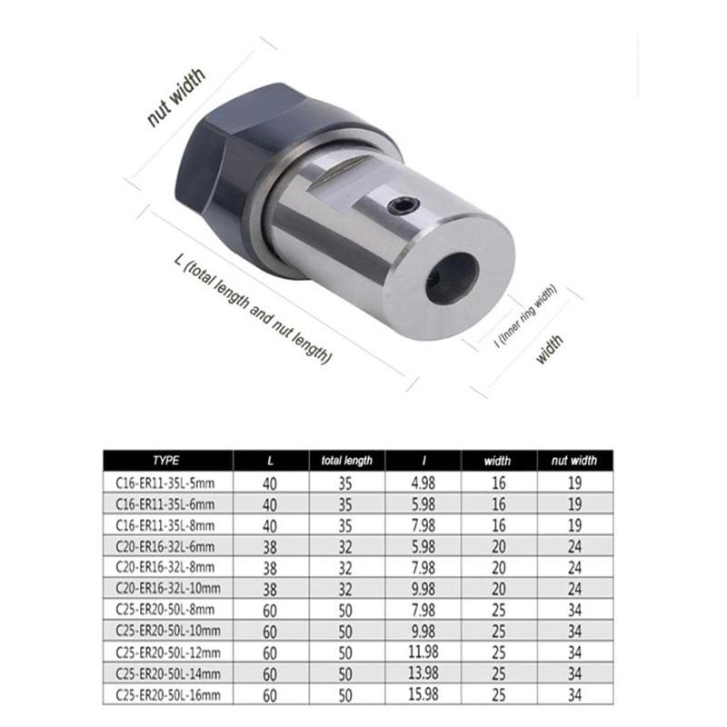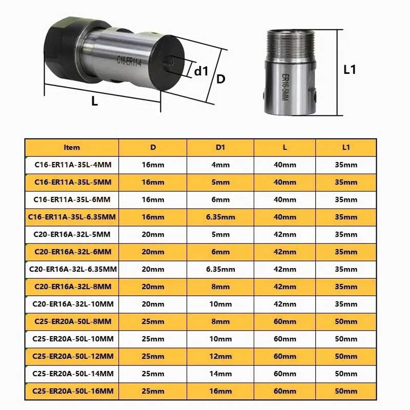 کولت اسپیندل C16-ER11A با قطر 5 میلی متر یک ابزار دقیق و با کیفیت برای استفاده در دستگاه های CNC کوچک و متوسط می باشد. این کولت از جنس فولاد ساخته شده و مقاومت بالایی در برابر فشار و سایش دارد. ارتفاع کولت 40 میلی متر و قطر شفت آن 16 میلی متر است که با شفت های موتور 5 میلی متر مانند اسپیندل سری 775 و 895 سازگار می باشد. قطر داخلی کولت 5 میلی متر است و دقت ساخت آن 0.02± میلی متر می باشد ، به همین دلیل هنگام چرخش بر روی موتور هیچ گونه لنگی ایجاد نکرده و دقت دستگاه CNC را افزایش می دهد و از آسیب دیدن موتور جلوگیری می کند.