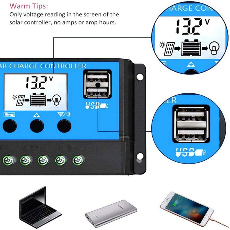 این کنترلر خورشیدی 20 آمپر دارای حفاظت های متعدد است که شامل حفاظت در برابر اتصال کوتاه , اضافه بار , جریان بیش از حد , شارژ بیش از حد و ولتاژ غیرمجاز می شود و امنیت باتری و تجهیزات متصل به سیستم را تضمین می کند. کنترلر شارژ خورشیدی مجهز به صفحه نمایش LCD است که وضعیت شارژ و ولتاژ باتری را نمایش می دهد و با تایمر داخلی می توان مصرف بار را برنامه ریزی کرد. علاوه بر این , دو عدد پورت USB امکان شارژ مستقیم موبایل و تجهیزات الکترونیکی را فراهم می کند.