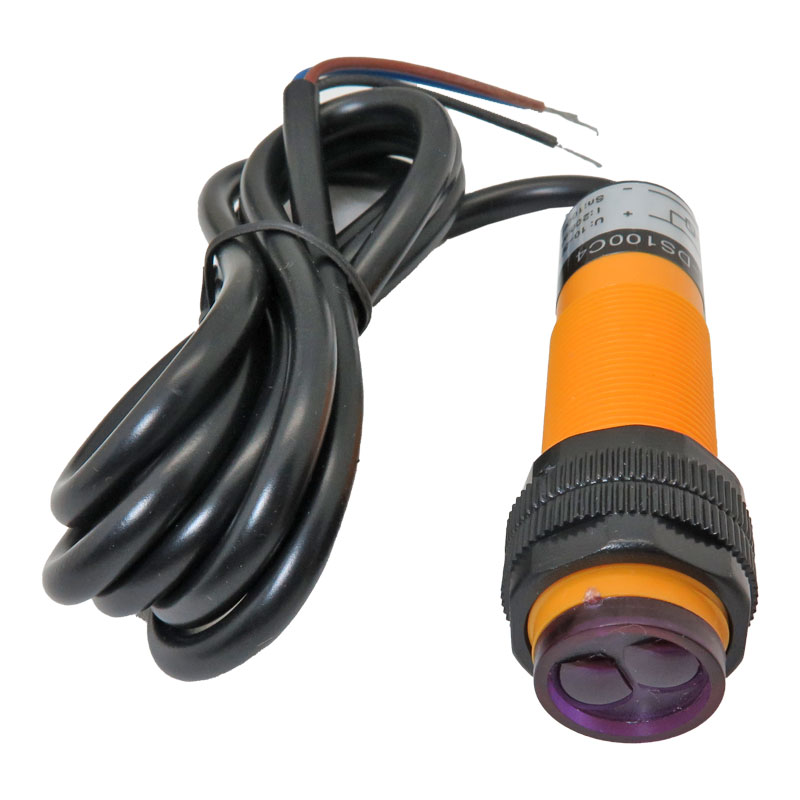 سنسور مجاورتی مادون قرمز E3F-DS100C4 یک سنسور نوری صنعتی از نوع Diffuse است که با بهرهگیری از تکنولوژی مادون قرمز مدولهشده، توانایی تشخیص دقیق اجسام تا فاصلهی ۱۰۰ سانتیمتر را داراست. این سنسور مجاورتی نوری صنعتی با تشخیص بازتاب نور از سطح اجسام، بدون تماس مستقیم با آنها، امکان اندازهگیری فاصله را فراهم میکند و بهدلیل مقاومت در برابر تداخل نوری ناشی از منابعی مانند نور خورشید یا لامپها، انتخابی بسیار کارآمد برای محیطهای صنعتی است. عملکرد این سنسور مجاورتی بر اساس دریافت نور بازتابشده و تبدیل آن به سیگنال الکتریکی است. از آنجایی که تشخیص آن وابسته به جنس جسم نیست، تمامی اشیایی که نور را منعکس میکنند، توسط این سنسور شناسایی میشوند. همچنین، راهاندازی و استفاده از این سنسور بسیار ساده بوده و نیازی به تنظیم حساسیت ندارد.سنسور نوری E3F-DS100C4 دارای خروجی NPN NO است و میتواند تا جریان ۳۰۰ میلیآمپر را تحمل کند. با ولتاژ تغذیه بین ۶ تا ۳۶ ولت DC، فرکانس پاسخ دهی ۳۰۰ هرتز و زمان پاسخگویی سریع ۱.۵ میلیثانیه، عملکردی قابل اعتماد در شرایط کاری متنوع ارائه میدهد. بدنه مقاوم آن از جنس ABS ساخته شده و لنز آن از نوع PMMA است که همراه با درجه حفاظت IP67، از سنسور در برابر گردوغبار و رطوبت محافظت میکند.