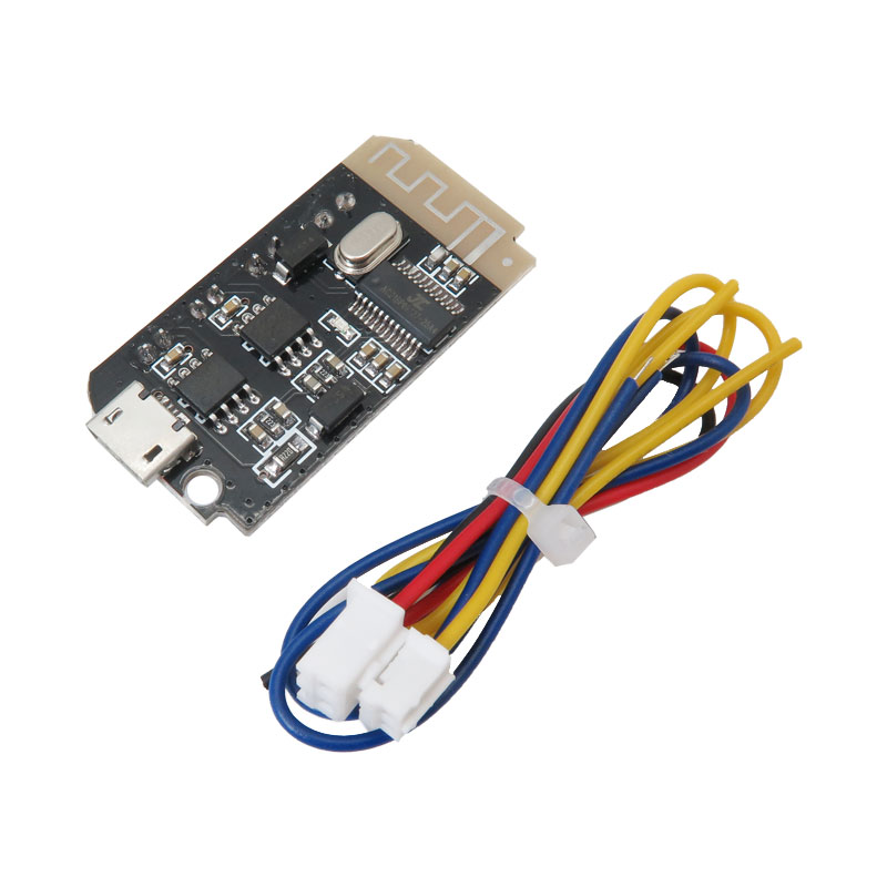This is a small size and cost-effective Bluetooth 4.2 Audio Receiver module with dual 5W power amplifier circuits. It supports auto-reconnect and can be powered by micro USB or 3.7V lithium battery. The module can be turned into a stereo Bluetooth speaker when connected with two speakers. Also, you can connect the board to a computer via USB to use it as a sound card.