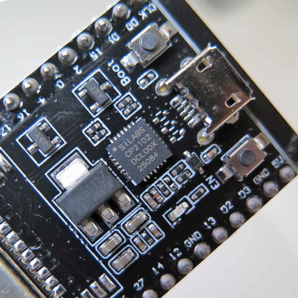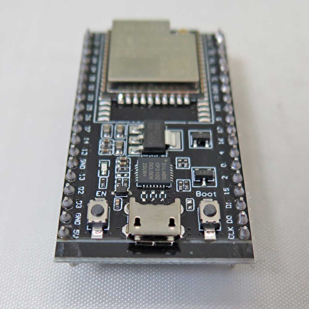 Micro USB port: USB interface. Power supply for the board as well as the communication interface between a computer and the ESP32 module.