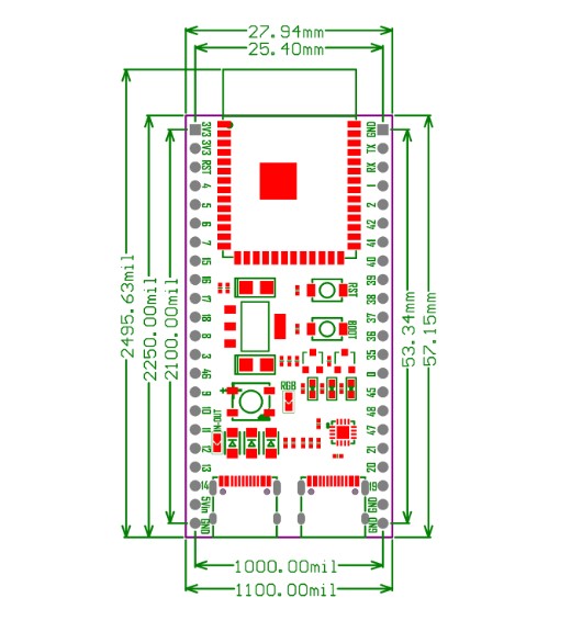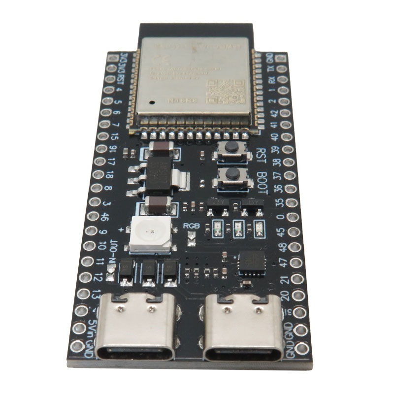This development board uses PCB internal antenna and has two processing cores, each of which can be controlled separately, with a frequency between 80MHz and 240MHz, also equipped with ESP32-S3 series chips, 16MB flash and 8 It is also PSRAM.