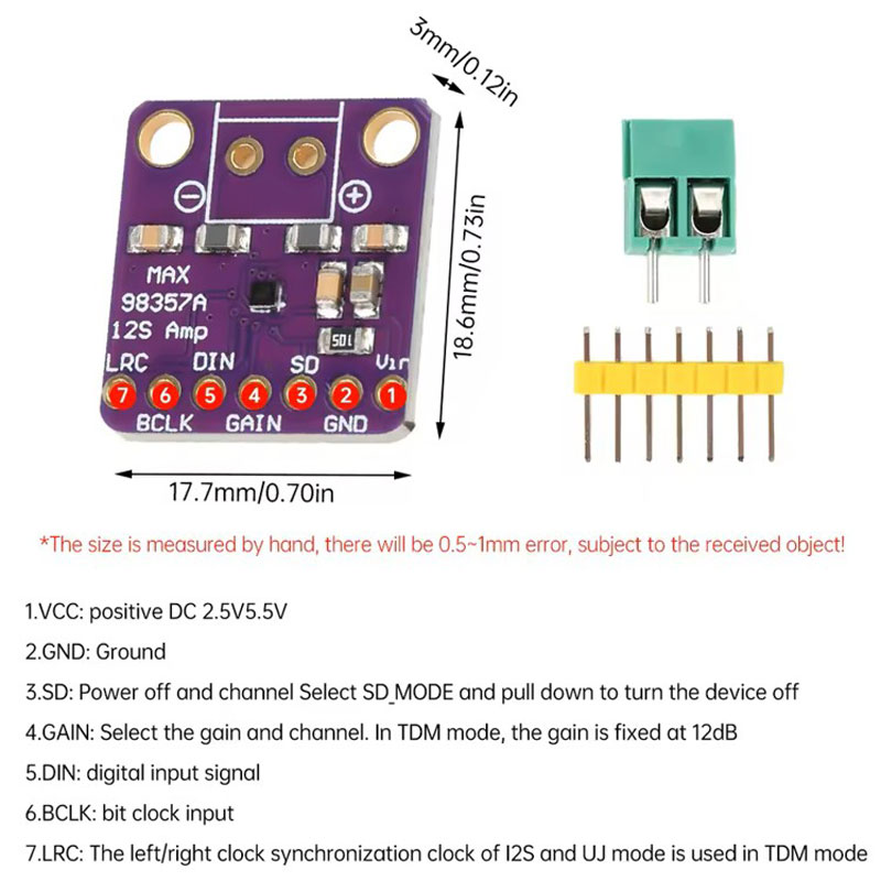 - ورودی صوتی I2S: پشتیبانی از سطوح منطقی 3.3 ولت و 5 ولت