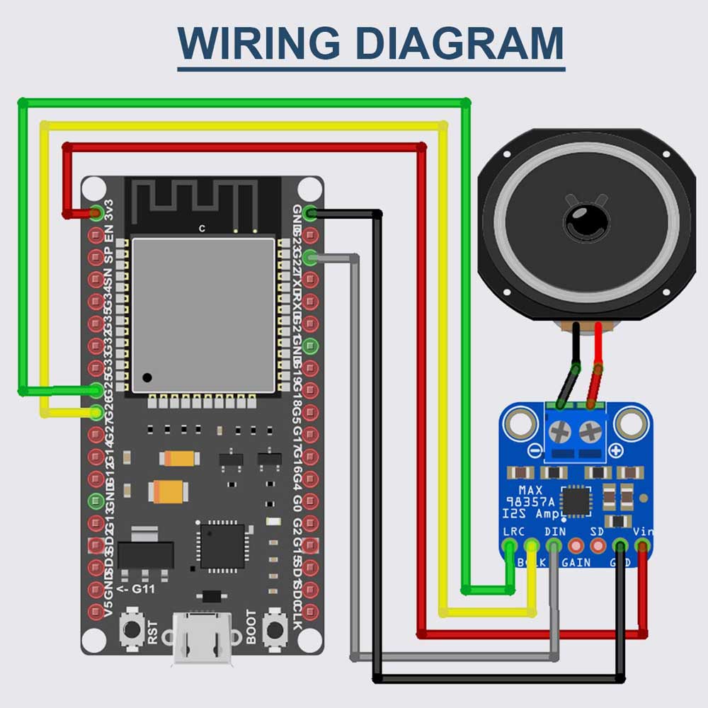 برای اتصال این ماژول به بردهایی مثل ESP32 یا Arduino، پایه های DIN، BCLK و LRC باید دقیقاً به پین های I2S آن ها متصل شوند. پایه های GAIN و SD اختیاری هستند و در صورت نیاز برای تغییر بهره یا خاموش کردن ماژول استفاده می شوند.