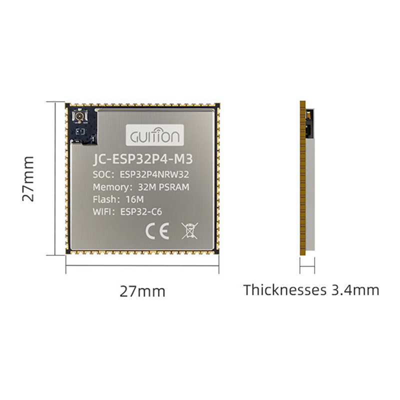ماژول هسته ESP32-P4 مبتنی بر دو چیپ ESP32-P4 و ESP32-C6 یکی از کامل ترین و پیشرفته ترین بسترهای توسعه شرکت GUITION است که ترکیبی از قدرت پردازش بسیار بالا و ارتباطات بی سیم مدرن را در یک پلتفرم یکپارچه در اختیار توسعه دهندگان قرار می دهد. این برد به گونه ای طراحی شده که بتواند هم نیازهای پردازشی سنگین مانند پردازش تصویر، هوش مصنوعی و سیستم های گرافیکی را برطرف کند و هم در زمینه ی ارتباطات بی سیم به روزترین استانداردها مانند Wi-Fi 6 و Bluetooth LE را پوشش دهد.