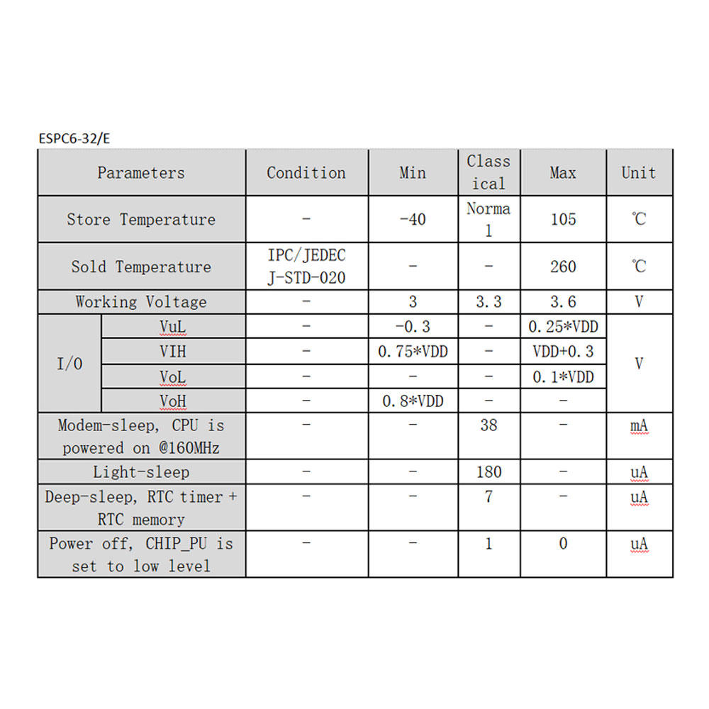 - تراشه اصلی: (Chipset) ESP32-C6 با معماری RISC-V 32-bit