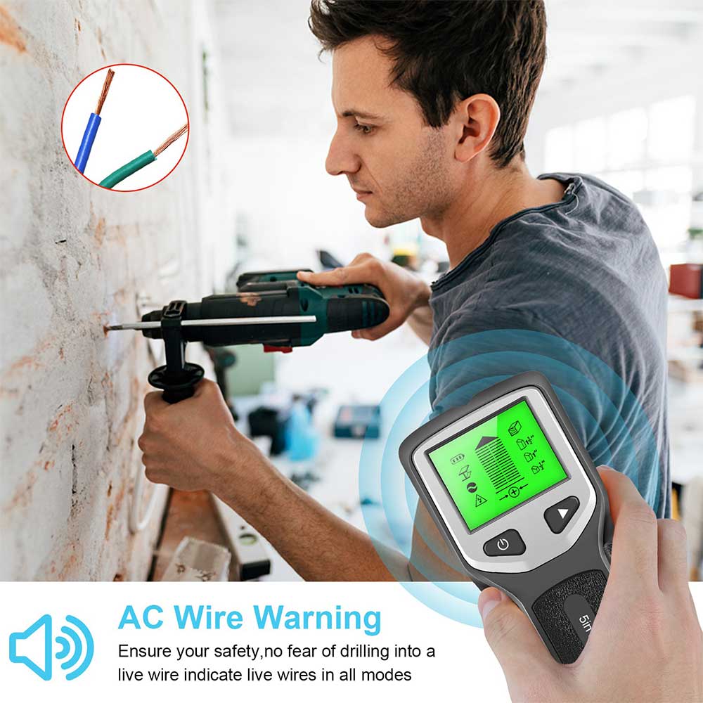 - عمق اسکن قابل تنظیم برای چوب ، فلز و سیم برق تا 60 میلی متر